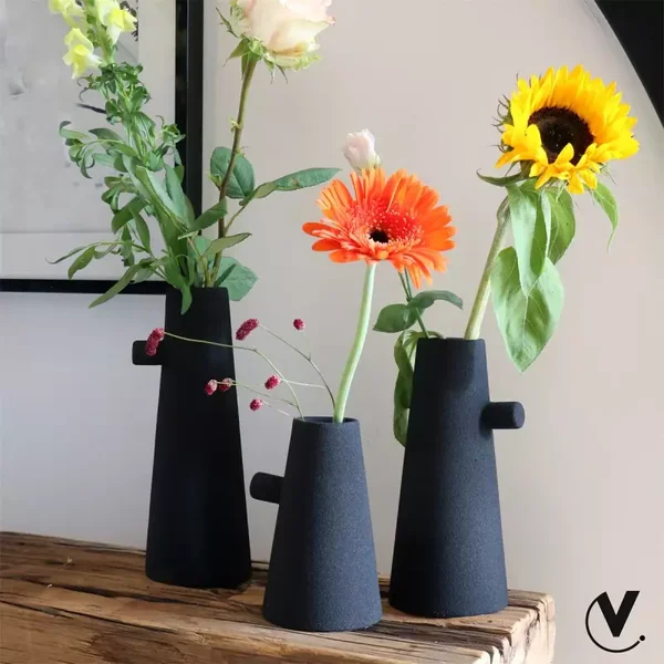 Vazen set Tumbes black - Ø9 x H15/21/26 cm