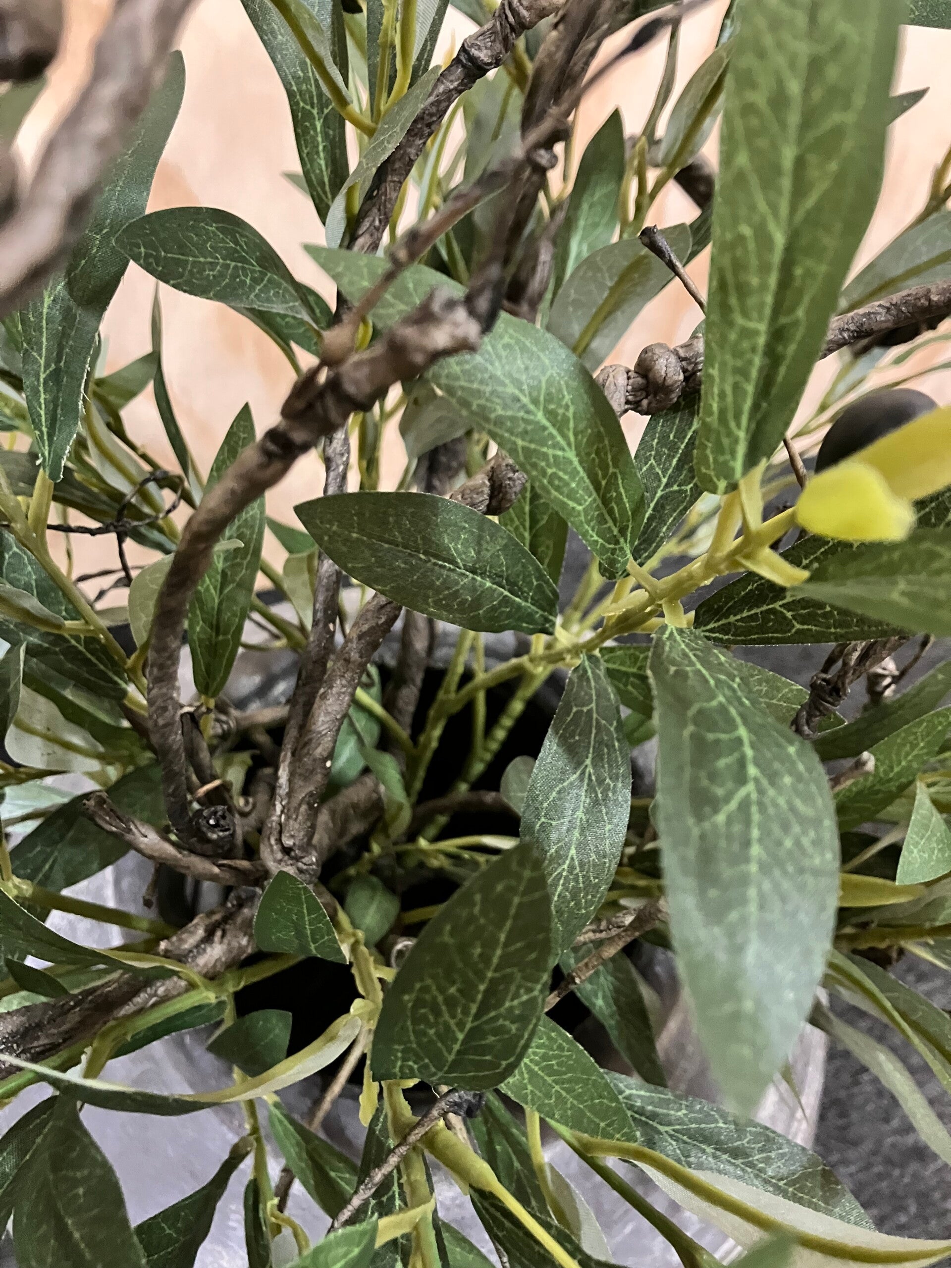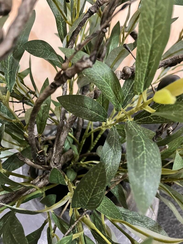 Rustig boeket van zijden olijftakken in combinatie met twig takken. Deze takken kunnen in allerlei vormen gebogen worden en geven het boeket een landelijke uitstraling!