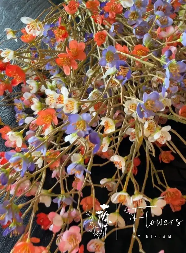 Deze prachtige grote zijden tak met fijne bloemetjes geeft een speelse en rustige uitstraling aan je pot of vaas!