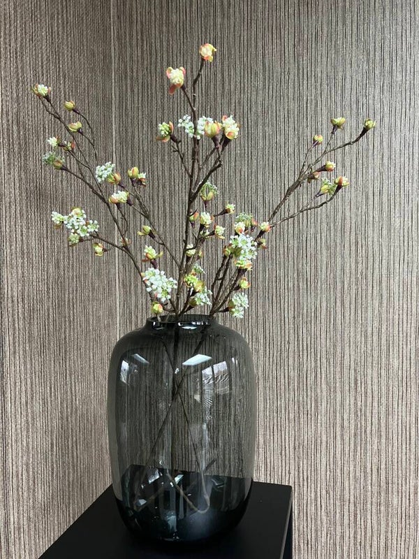 Prachtige grote, lange sobere tak met groen/witte knoppen. Deze tak geeft op een subtiele manier kleur aan je interieur en zorgt voor warmte en gezelligheid!