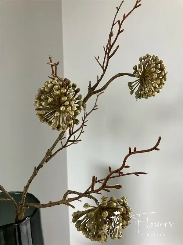 Een prachtig, rustig boeket met groene tinten! In het boeket vind je 3 asparagustakken, 1 magnoliatak en 3 takken met bruine besjes.
